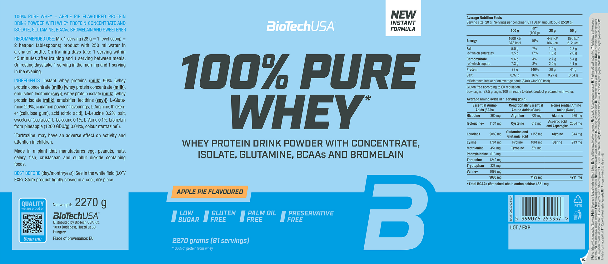 BioTechUSA 100% Pure Whey Apple Pie (2270 g)
