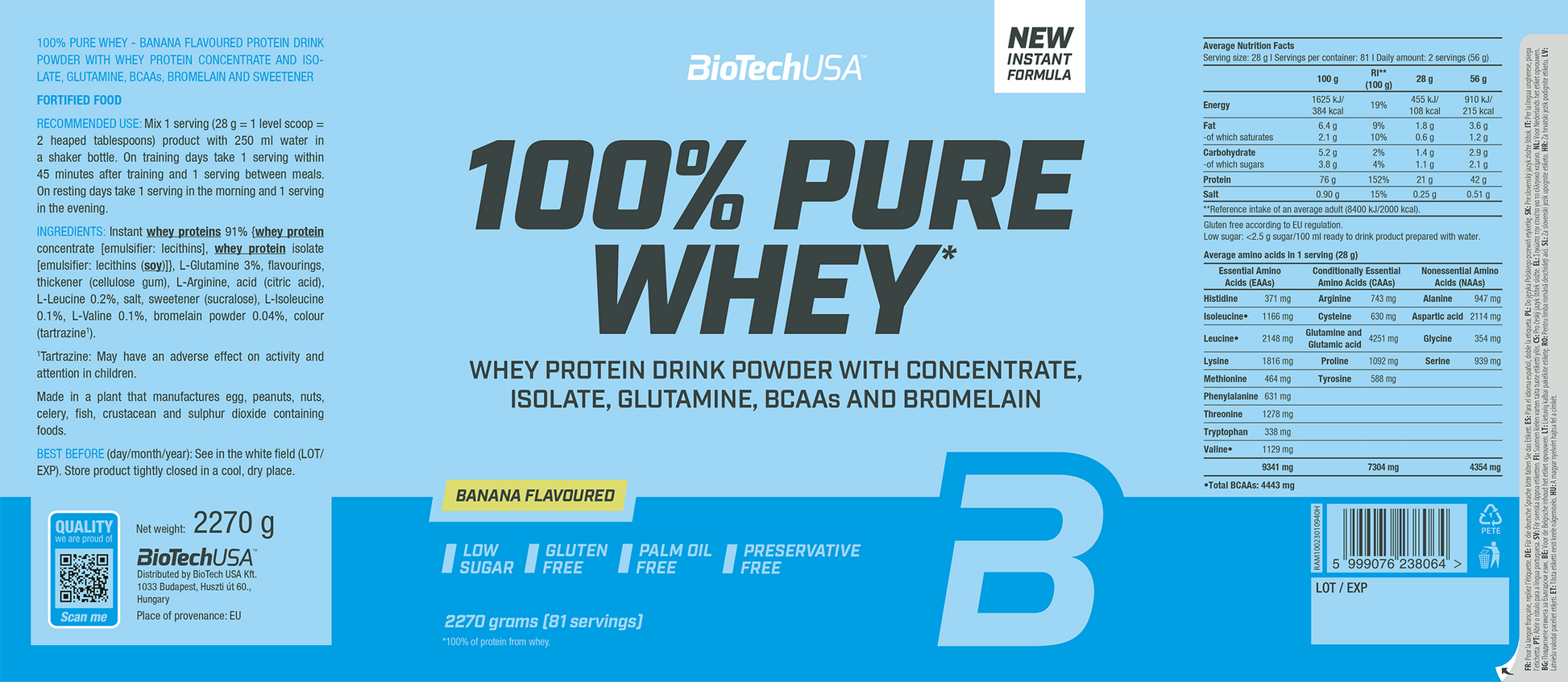 BioTechUSA 100% Pure Whey Banane (2270 g)