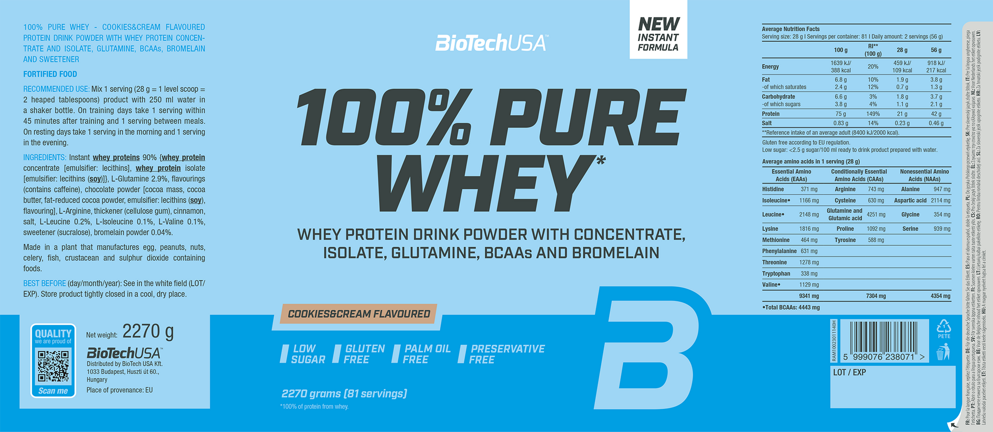 BioTechUSA 100% Pure Whey Cookies & Cream (2270 g)