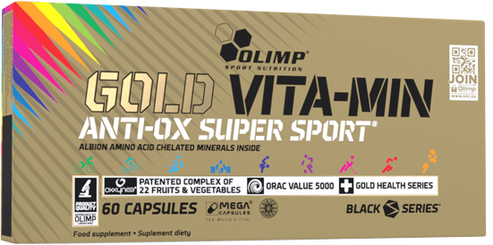 Vitamin Gold Anti-OX Super Sport d'Olimp est un multivitamines scindé en deux complexes : ANTI-OX POWER et VITA-MIN POWER.