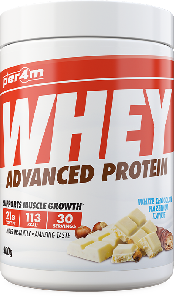 PER4M Whey Protein, c'est un moyen simple et pratique d'augmenter vos apports journaliers en protéines, de façon à atteindre vos objectifs nutritionnels et favoriser une bonne construction/récupération musculaire.