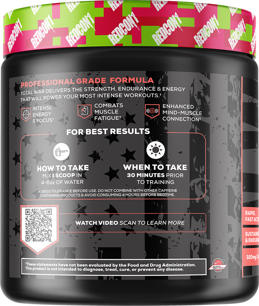 Total War de Redcon1, c’est un pre-workout avec caféine dont la puissance provient d'une formule particulièrement riche.
