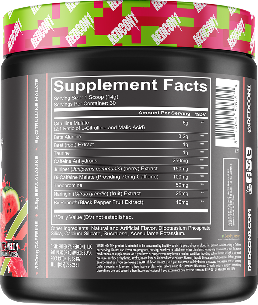 Sa composition parle pour lui, avec 250 mg de caféine anhydre, 100 mg de malate de dicaféine, 6 g de malate de citrulline, 3,2 g de bêta-alanine et 1 g de taurine par dose.